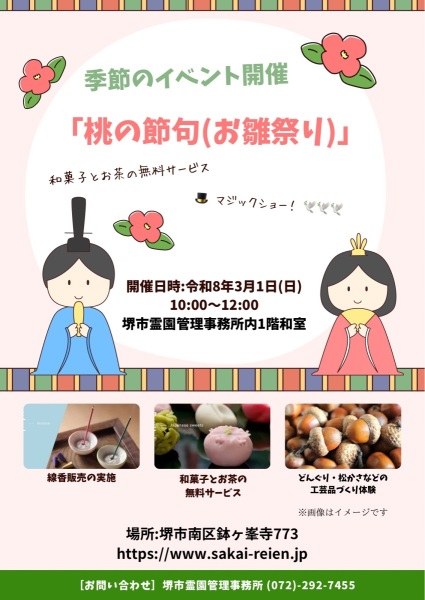 令和8年3月1日(日)、堺公園墓地事務所棟に設置されている1階和室において、季節のイベント